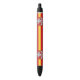 Pen with design with flag of Vilnius, capital city of Lithuania; red flag with yellow stripe and coats of arms with two golden lions holding a shield in the centre