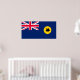 This design features the flag of Western Australia, which is a state occupying the western portion of Australia, excluding the country's external territories. The state of Western Australia is bounded by the Indian Ocean to the north and west and the Southern Ocean to the south; it borders the state of South Australia to the south-east and the Northern Territory to the north-east. Western Australia is Australia's largest state. Most of the population lives in the area around Perth, which is the state's capital and largest city, leaving the rest of the state sparsely populated.