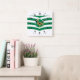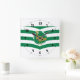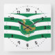 Wall Clock with design with a flag of historic county of Wiltshire, in England, Great Britain; white and green flag with angled stripes and great bustard in the centre