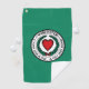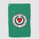 Golf Towel with flag of city of Worcester, Massachusetts; green flag with white emblem with red heart in the centre