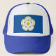 Hat with design with a flag of historic county of Yorkshire, in England, Great Britain; flag with a white rose on a blue field