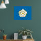 This design features the flag of the historic county of Yorkshire in the north of England. Within the borders of the historic county of Yorkshire are vast stretches of unspoiled countryside such as can be found in the Yorkshire Dales or the North York Moors. Yorkshire has been nicknamed "God's Own County". The emblem of Yorkshire is the White Rose of the English royal House of York; the flag of Yorkshire features that rose on a blue background.