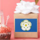 Sticker with design with a flag of historic county of Yorkshire, in England, Great Britain; flag with a white rose on a blue field