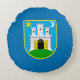Round Pillow with design with flag of Zagreb, capital city of Croatia, blue flag with emblem
