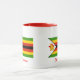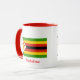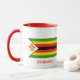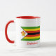 The flag of Zimbabwe was adopted on April 18, 1980. The soapstone bird featured on the flag represents a [statuette] of a bird found at the ruins of Great Zimbabwe. The bird symbolizes the history of Zimbabwe; the red star beneath it symbolizes the revolutionary struggle for liberation and peace.