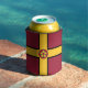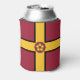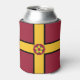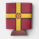 Can cooler with design with a flag of historic county of Northamptonshire, in England, Great Britain; maroon flag with a gold cross and the county’s traditional rose in the centre