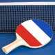 Ping pong paddle with flag of Schleswig-Holstein; design with horizontal tricolor of red, white and blue