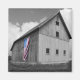 Flags of Our Farmers XVI by James McLoughlin. Black and white photograph of a barn with an American flag.