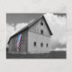 Flags of Our Farmers XVI by James McLoughlin. Black and white photograph of a barn with an American flag.