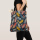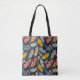 Elevate your everyday style with this chic tote bag featuring a striking pattern of bold Art Nouveau feathers. The intricate feather design showcases elegant curves and flowing lines in rich, vibrant tones, set against a deep navy blue background for a dramatic and sophisticated look.