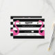 Les flamants roses amusants mettent en avant cette carte de réponse Mariage chic sur un arrière - plan rayé noir et blanc, ce qui en fait une adresse idéale pour une destination, une plage, un mariage hawaïen, caribéen ou tropical. Les éléments de coordination se trouvent dans la collection de Mariages de Flamants roses tendance.