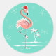 Flamant rose de Noël autocollant ronde