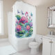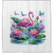 Un Beau Rideau De Douche Tropical Avec Fleurs Et Flamant rose Rose
