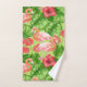 Motif de peint avec des feuilles de monstère aquarelle, fleurs d'hibiscus, fleurs de flamants et oiseaux