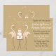 Un design mariage amusant et élégant avec une touche rétro pour. Une paire de flamants de pêche se tient de chaque côté d'un gâteau de mariage avec des coeurs de pêche, des confettis, des anneaux d'or et des courbes contre un arrière - plan neutre de changement de couleur brun. Un design personnalisable pour personnaliser avec votre propre texte, images et idées. Une image art numérique originale.