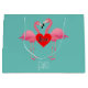 Flamant rose rose Love Design - Sac cadeau Turquoise léger - Grand
