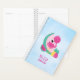 Un planificateur mensuel personnalisé avec votre nom et votre titre d'emploi, ou autre texte. Conçu avec une jolie illustration d'un flamant rose avec quelques pastèques et ananas. Couleurs rose et vert. L'arrière - plan est une aquarelle bleu clair. L'été et tropical.