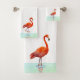 Flamant rose rose debout sur la serviette de bain