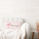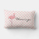 Un bel accent rose jette l'oreiller dans un motif à pois rose et blanc. Les graphiques d'un grand flamant rose et un Flamant rose de lecture de texte en script noir décorent les deux côtés du coussin. Personnalisez le texte pour lire ce que vous voulez. Un couvre-couette et des coques coussins sont disponibles.