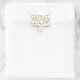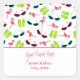 Un autocollant d'adresse avec un motif de flamants roses, tongs verts, lunettes de soleil roses et bleues.