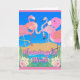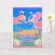 Flamingle Time, papier invitation carte de voeux avec flamants roses autour d'un trou d'eau avec des fleurs tropicales et un ciel bleu vif. Customisez le texte sur la couverture et à l'intérieur de la carte avec vos informations sur l'événement de fête. Art. Image, et copyright © Shoaff Ballanger Studios, 2023.