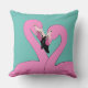 Un oreiller jeté avec un couple de flamants sur un arrière - plan d'aqua.