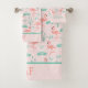 Monogrammez cet ensemble de serviettes de bain à flamants roses avec vos initiales ou votre nom de famille ou le texte de votre choix. L'ensemble comprend une serviette de bain, un gant de toilette et une serviette de main. Également vendus séparément.