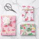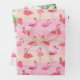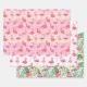 Trois feuilles de papier d'emballage ensemble avec flamants roses sur une variété d'arrière - plans de l'aquarelle rose et jaune à feuilles tropicaux.