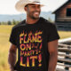 A fiery graphic design with the words Flame On Bro! Partys Lit in bold, stylized lettering with a flame design.