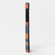 An eye-catching Case-mate 'Barely There' to protect your iPhone 5 with an abstract mosaic pattern in vibrant colours - Flaming Orange, Midnight Blue and Deep Green, from a digital design by Judy Adamson