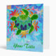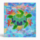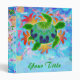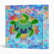 A digitally painted green sea turtle with a patterned shell against a background of orange kelp like flames. Colourful and beautiful original sea turtle art. Bright, colourful art binder -- add your title or name to the front to customize it.