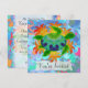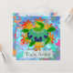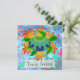 Custom two-sided invitation cards. Front has customizable "You're Invited". Back has invitation information--enter your event title, date, time, location, and a personal message. A digitally painted green sea turtle with a patterned shell against a background of orange kelp like flames.