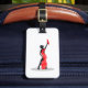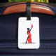 Flamenco Dancer distressed design in red and black. She's holding a fan and standing on a platform.