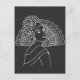 Flamenco Spanish Dancer Lady With Fan Ink art Drawing black and white postcard