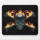 Skull and crossbones with 8-ball head, black bones and hot rod flames. T-shirts, sweats, cards, gifts.