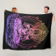 This stylish and cozy blanket features a black background with a large illustrated image of the flaming Buddha. The Buddha is printed in an rainbow gradient pattern with beautiful sunset colours. It makes a great addition to your spiritual or mystical home décor.