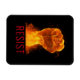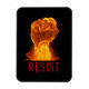 Social justice themed magnet features large fist of fire and flames with customizable "RESIST" text in red modern font on black background.