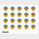 Show your support for Ukraine with this sticker / seal featuring round cutout of Ukraine's flag with flaming fist and "Glory to Ukraine", one of the country's most popular slogans, in curved text.