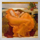 An allegory for Flaming June. Vintage portrait of a beautiful redhead wearing a vibrant orange gown of translucent fabric. She rests on a marble bench with more fabric as cushion. In the background moonlight is reflected by the ocean. From an original 19th century (1895) painting by Frederic Leighton. All Rights Reserved © 2015 padre art