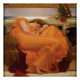 Flaming June by Frederic Leighton, oil on canvas 1895, is a painting of a draped female figure in repose, reclining in an elegant marble interior, the natural light of the setting sun illuminating the scene in a range of warm, brilliant colours like liquid gold. The elegant, classical figure and smooth contours evoke the nymphs and draped figures of the sculpture of classical Greece, while the inclusion of the toxic Oleander plant above provides a Romantic reminder of the link between sleep and death. Flaming June is the artist’s most famous painting among many that are regaining recognition after a long period of neglect of art of the Victorian era.