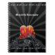 Hit the open road with this notebook that reflects your love for your bike. A graphic outlined motorcycle is accented by a red flaming heart against a rich black grunge burst background. Add a name or any other message above. Available with matching products, as well as a wedding suite.