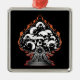 Flaming Skull and Hearts Metal Ornament
