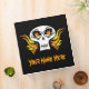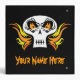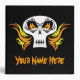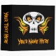 A flaming skull on front and back. Customize the text on the front, back and spine.