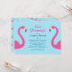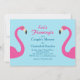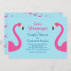 Fun flamants roses et le dicton "Let's Flamingle" mettent l'accent sur l'invitation baby shower de ce couple branché sur un arrière - plan bleu clair de type turquoise profond, ce qui le rend parfait pour un barbecue d'été, une réunion au bord de la piscine, ou un événement à thème flamand.