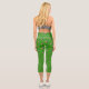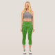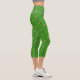 Fun St. Patrick’s Day capri leggings with a pattern of pink flamingos in green outfits on a green background.