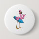 Flamingo as Surfer with Surfboard 3 Inch Round Button