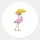 Flamingo at Raining with Umbrella Classic Round Sticker