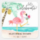 Add a tropical touch to your invitation envelopes with these bridal shower stickers featuring a pink flamingo on the beach enjoying a tropical cocktail next to a palm tree with a "let's celebrate" caption in modern, casual handwriting script. Art by KL Stock