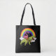 Flamingo Bird Riding T-Rex Dinosaur Rainbow Tote Bag