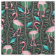 Flamingo Birds 20s Deco Ferns Pattern Black Green Fabric